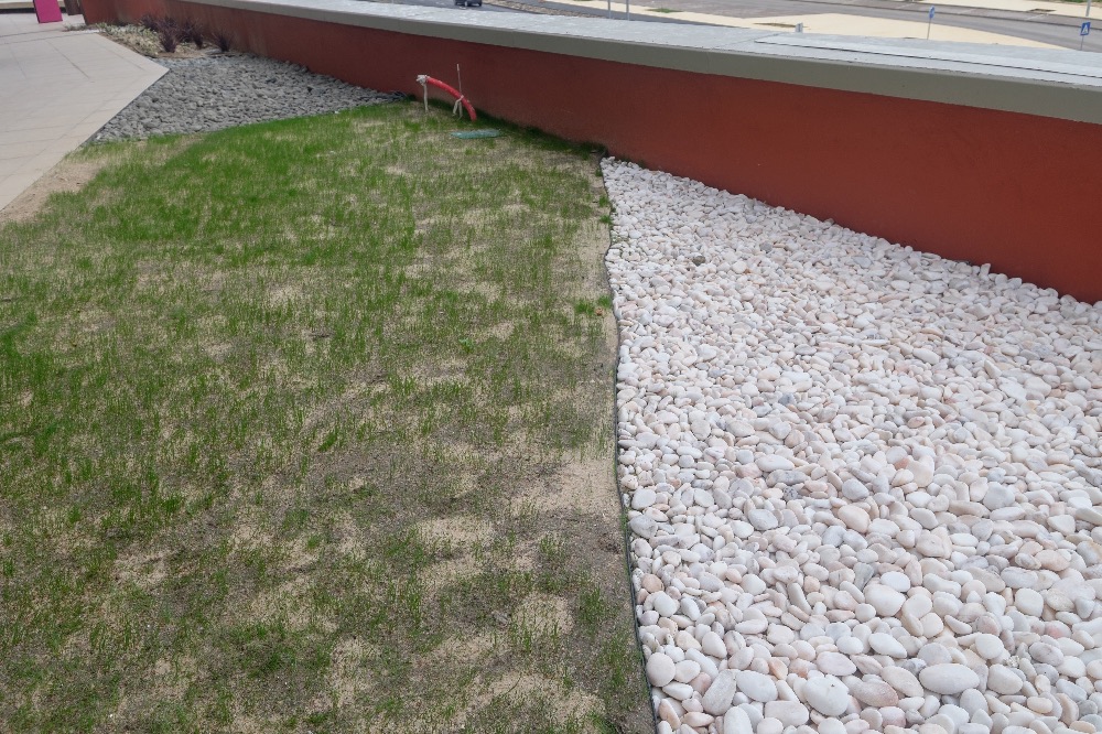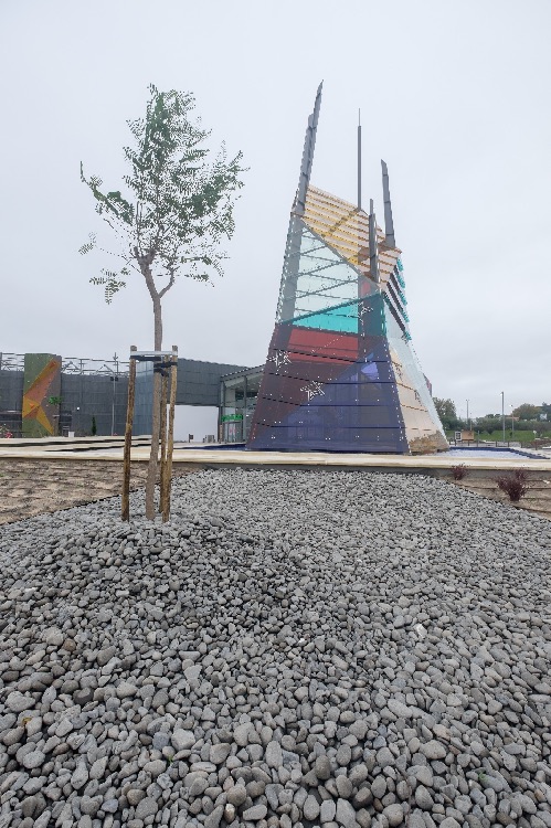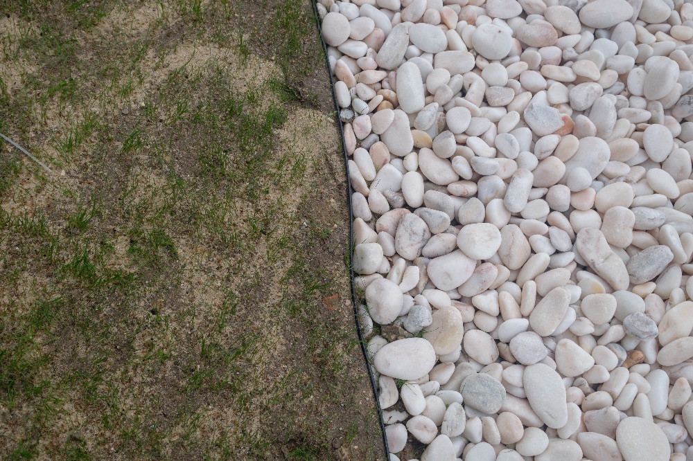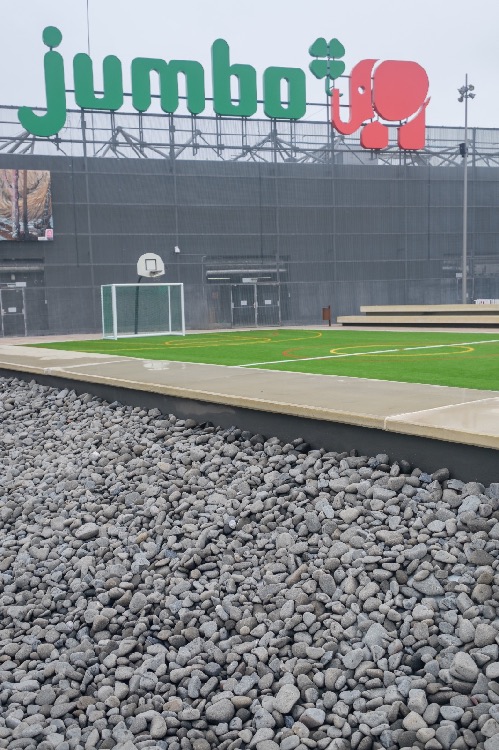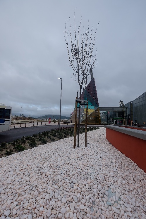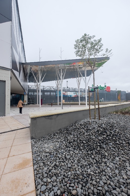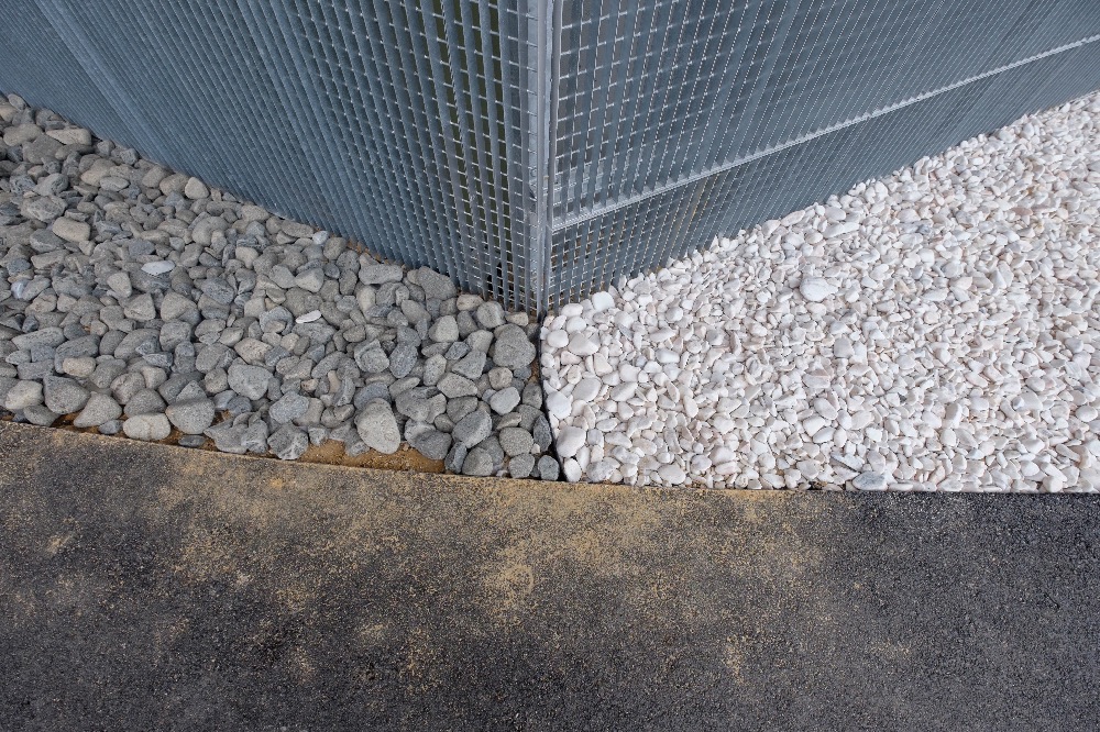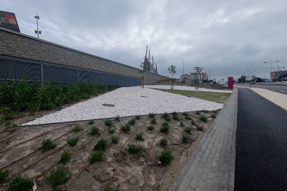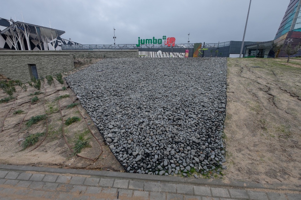 Recente Projeto fornecido para Centro Comercial Alegro shopping em Setúbal, perto de 320 toneladas de seixo rolado em Estremoz e Basalto (pedra preta) calibre-tamanho pedra referência 5/8 que serviu para revestir toda área circundante do edifício, espaços de jardim.